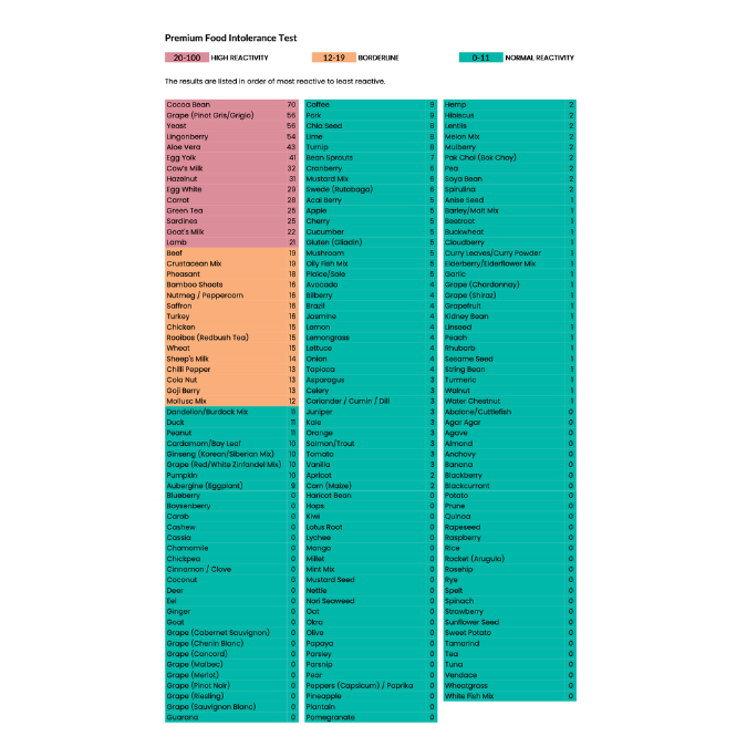 After consulting with us, she decided to take a Premium Food Intolerance Test to identify potential dietary triggers contributing to her condition. The results revealed intolerances which were likely exacerbating her symptoms.